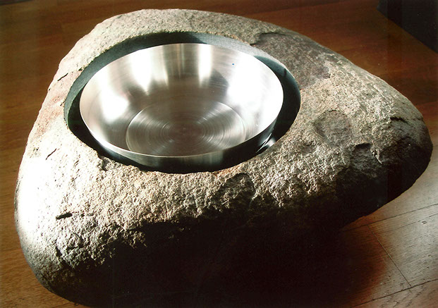 Soweit das Vorwissen, doch nun galt es entsprechend meiner gewohnten Arbeitsweise als Bildhauer und Handwerker mich am Material: Schale, Loch, Wasser zu erproben, die Erkenntnisse handgreiflich anzuwenden.